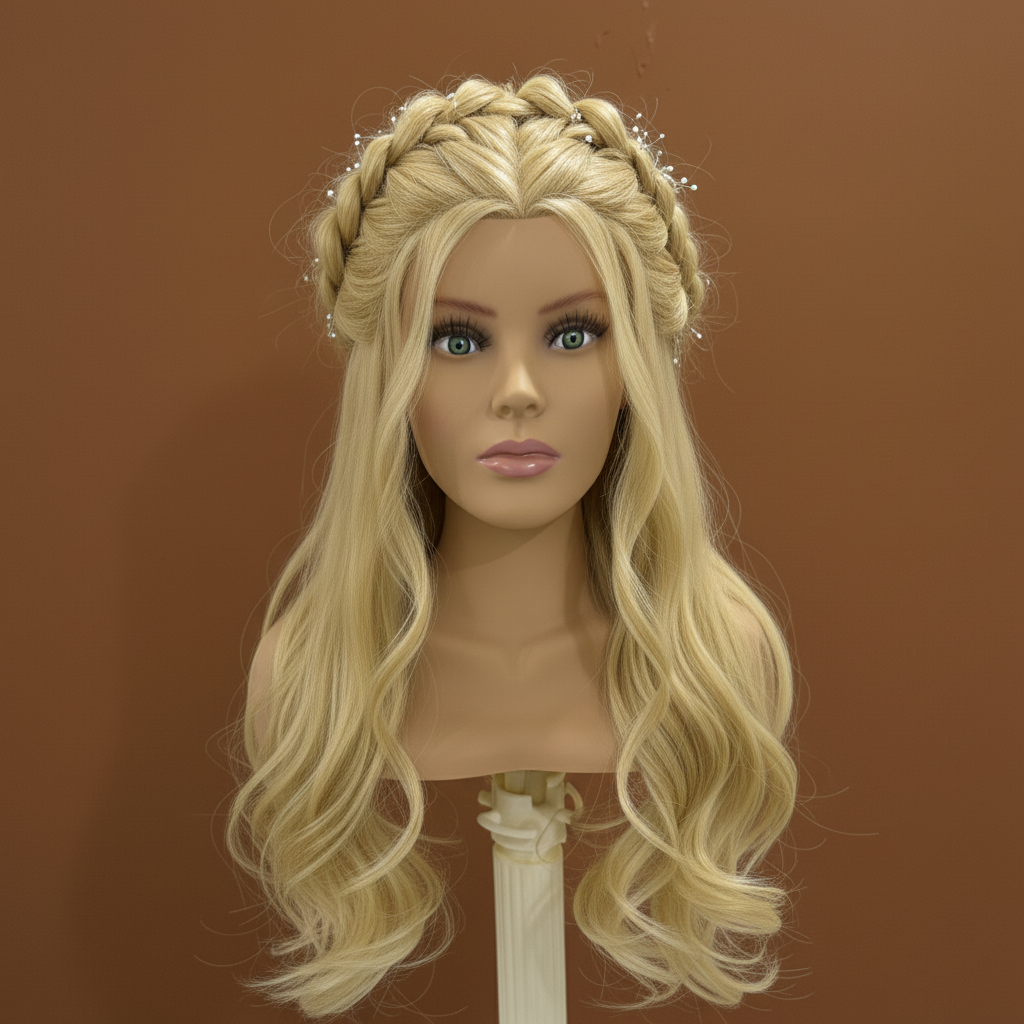 مانيكان شعر طبيعي 100% أوروبي - كثافة احترافية 240 جرام وطول 24 إنش