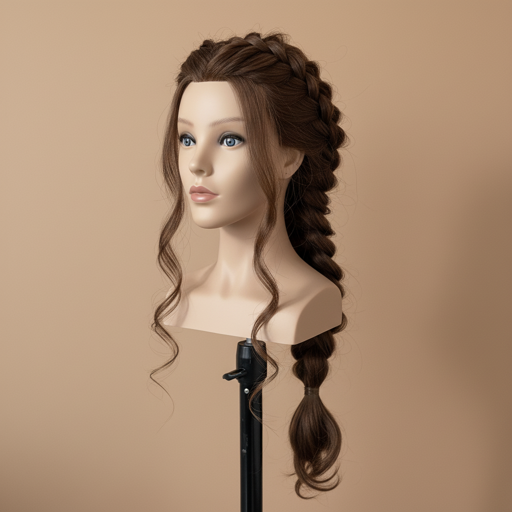 مانيكان شعر طبيعي 100% أوروبي - كثافة احترافية 240 جرام وطول 24 إنش